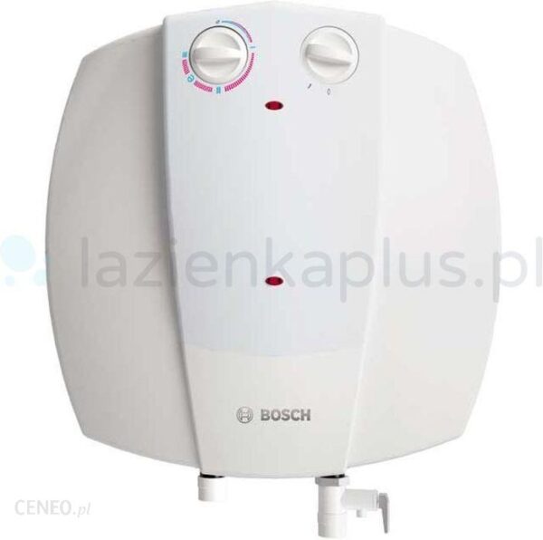 BOSCH TRONIC elektryczny podgrzewacz pojemnościowy 15 l, nadumywalkowy BOSCH TRONIC TR2000T 15 B to model przeznaczony do obsługi jednego punktu poboru wody (umywalka). Łatwy montaż dzięki niewielkim wymiarom urządzenia. Podgrzewacz może być zamontowany nad punktem poboru wody. Główne cechy: – Kolor: Biały – Obudowa zewnętrzna: blacha stalowa i tworzywo sztuczne – Emaliowany stalowy zbiornik podgrzewacza – Włącznik/wyłącznik oraz regulowany termostat kapilarny, który zapewnia ochronę przed zamarzaniem i dodatkowo umożliwia letni oraz antybakteryjny tryb pracy – Magnezowa anoda ochronna – Izolacja cieplna wykonana z ekologicznej, bardzo gęstej pianki poliuretanowej niezawierającej freonów – Wysoka stabilność ciśnieniowa – Łatwa obsługa – urządzenie wyposażone w kontrolkę roboczą – Łatwość dostosowania do instalacji bez konieczności modyfikacji podłączeń – Łatwy montaż – proste mocowanie do ściany Dane techniczne: – Pojemność: 15 l – Moc: 1500 W – Napięcie zasilania: 230 V AC – Masa pustego podgrzewacza: 9,4 kg – Masa napełnionego podgrzewacza: 24,4 kg – Czas nagrzewania (DT- 50 °C): 35 minut – Maksymalne dopuszczalne ciśnienie robocze: 8 bar – Przyłącza wody: 1/2 cala – Roczne zużycie energii elektrycznej AEC: 537 kWh – Poziom mocy akustycznej w pomieszczeniu LWA: 15 dB – Gwarancja: 2 lata